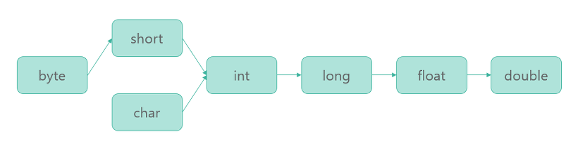 int, short, long, float, double, char, boolean
